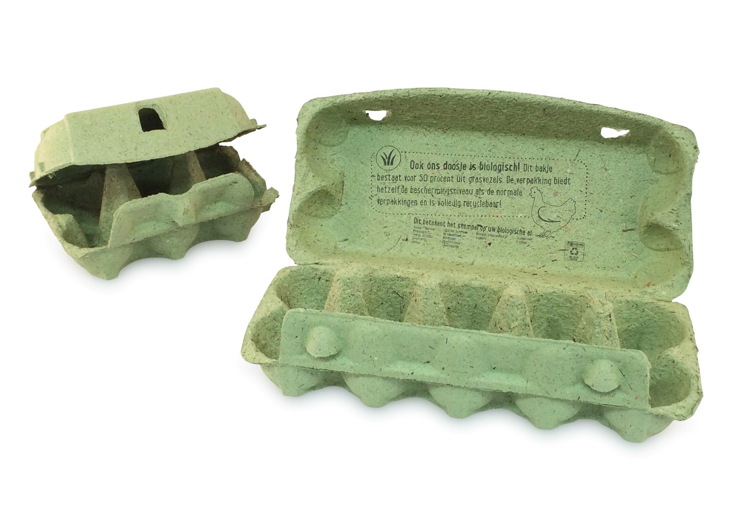 De eerste eindproducten liggen inmiddels in de supermarkten. Zoals de  ‘groene’ eierdoosjes die voor 50% worden gemaakt van de door NewFoss geproduceerde vezel uit natuurgras. Een wereldprimeur, waar een intensieve samenwerking aan ten grondslag ligt. De verpakking biedt hetzelfde beschermingsniveau als de andere eierverpakkingen en is volledig recyclebaar.